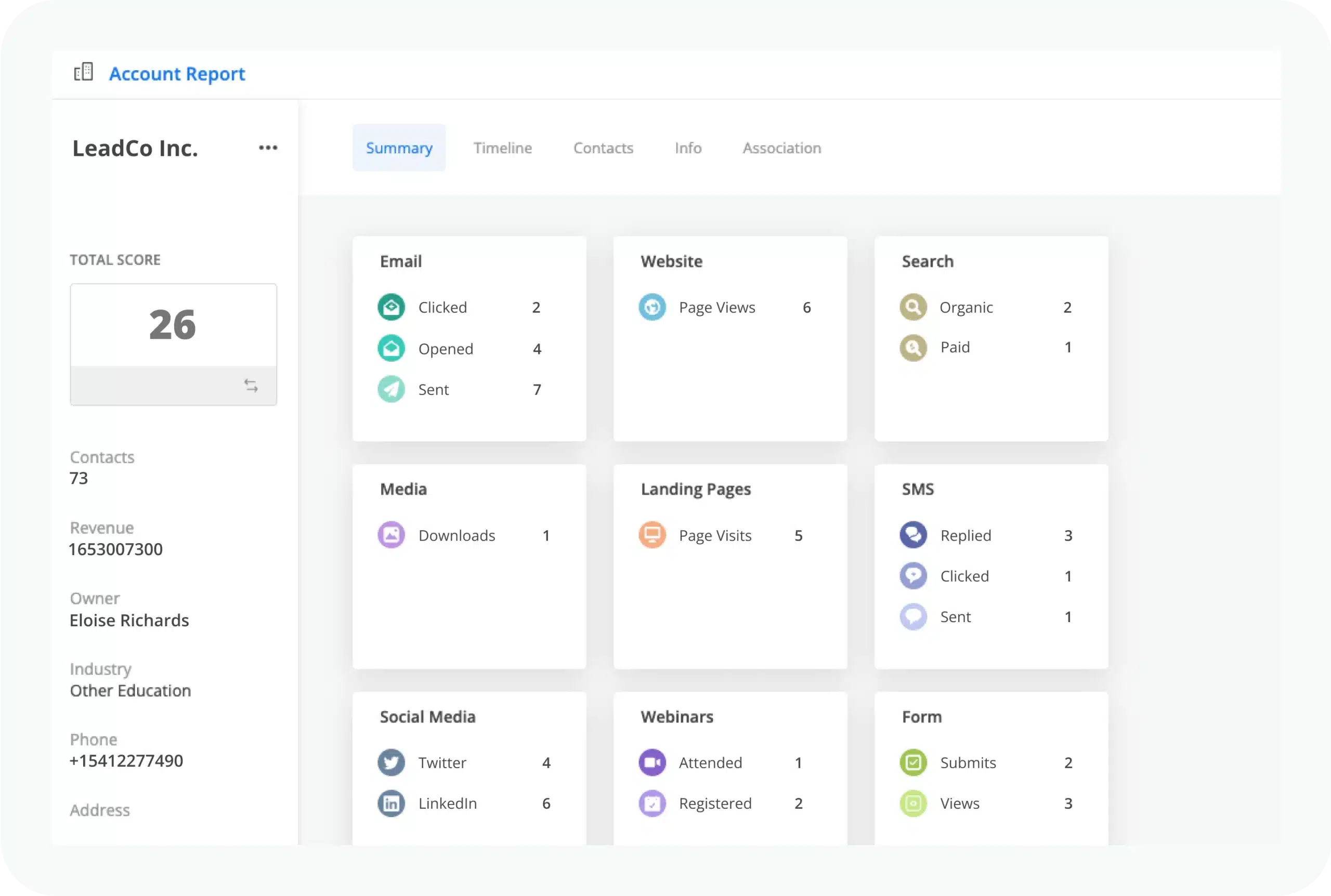 Act-On integrates with all major CRM providers to not only pass lead score information to lead fields but also provide Act-On’s lead profile widget in the CRM record to give Sales all the information they need to have an informed and intelligent conversation.